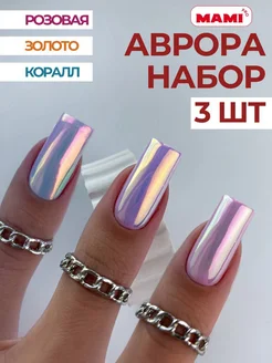 Втирка для ногтей набор радужная пигмент единорог Аврора