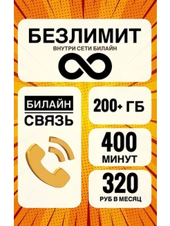 Сим карта Билайн с выгодным тарифом 200+гб 400мин