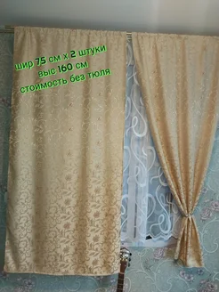 портьеры короткие светло-бежевые шир 75 см выс 160 см