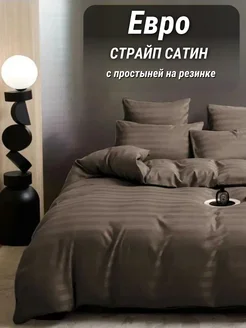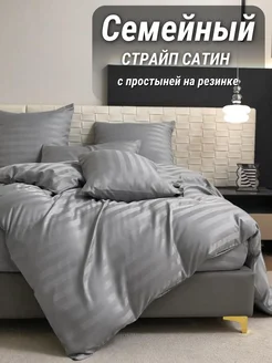 Постельное белье семейное на резинке 180х200 страйп сатин