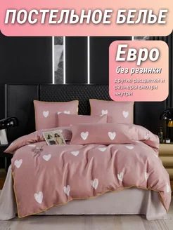 Постельное белье с сердечками розовое евро сатин