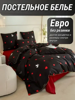 Постельное белье с сердечками черное евро сатин