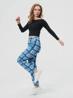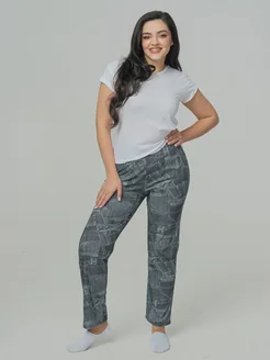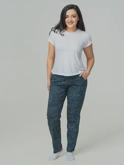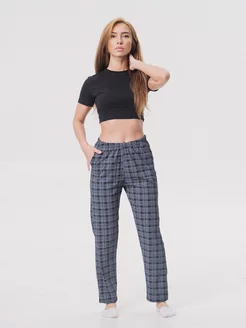 Брюки домашние с карманами в клетку трикотажные пижамные