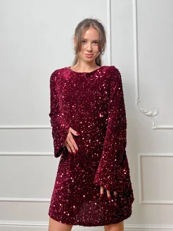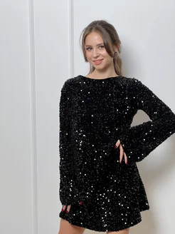 Платье праздничное вечернее в пайетках короткое мини