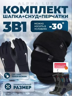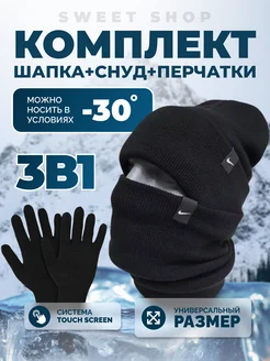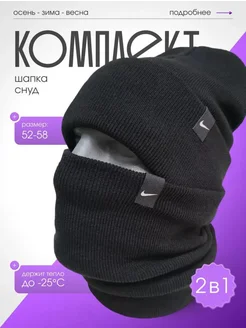 Шапка бини со снудом зимняя с отворотом