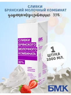 Сливки ультрапастеризованные 33% 1000 мл, 1 шт