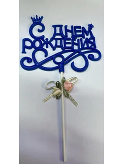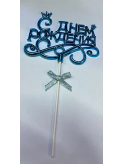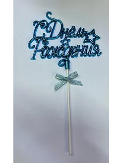 Топпер для торта С Днем Рождения ГОЛУБОЙ