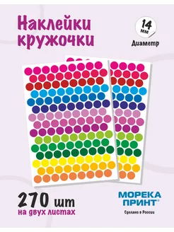 Наклейки кружочки цветные 270 шт, диаметр 14 мм