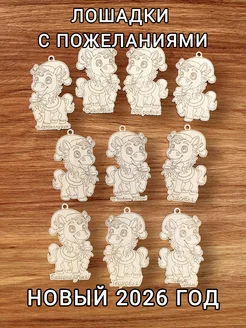 Деревянные заготовки Лошадки с пожеланиями 10 шт