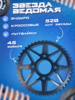 Звезда ведомая стальная 520-45 для Kayo K1, K2, T1, T2