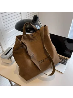 Сумка тоут INSIDE OUT ткань канвас 100% хлопок коричневая