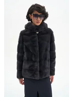 Шуба норковая натуральная короткая с капюшоном зимняя. 70см
