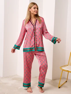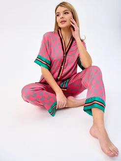 Пижама шелковая со штанами и рубашкой для дома и сна