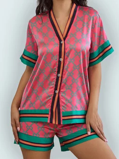 Пижама шелковая с шортами и рубашкой для дома и сна