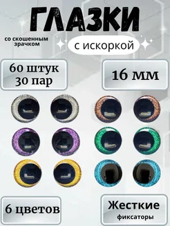 Глазки со скошенным зрачком для игрушек 16мм 60шт