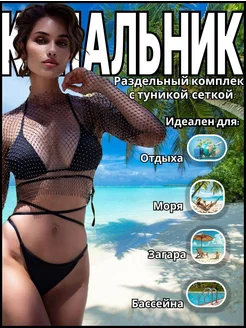 Купальник 3 в 1 с топом из сетки