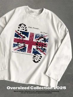 Белый лонгслив оверсайз с принтом y2k у2к сша usa америка