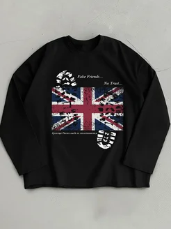 Черный лонгслив оверсайз с принтом y2k у2к usa сша