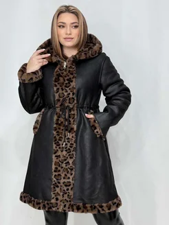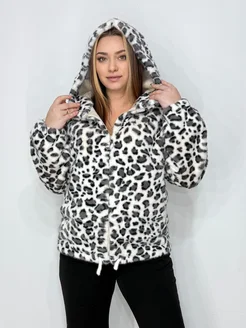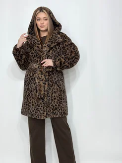 Шуба из искусственного меха леопард с капюшоном автоледи