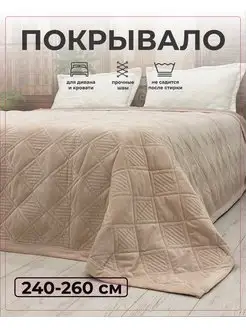 Велюровое стеганое покрывало плед 240х260 на кровать диван