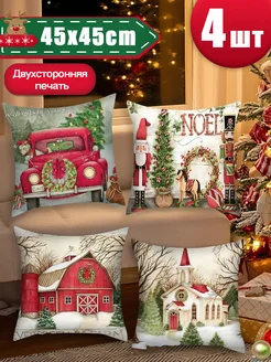 Новогодняя наволочка 45х45 на молнии Набор 4шт-