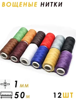 Нитка вощеная, плоская, 50м, 1мм, набор, 12 шт