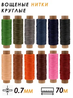 Нитка вощеная, круглая, 70м, 0.7мм, 12 шт