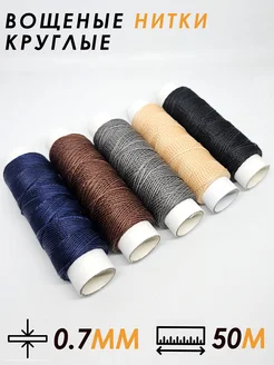 Нитка вощеная, круглая, 50м, 0.7мм, 5 шт