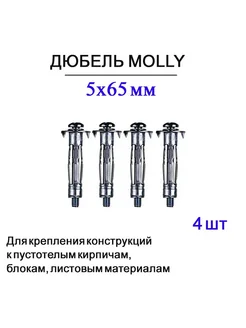 Дюбель Молли 5х65 мм для пустотелых конструкций 4 шт