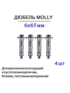 Дюбель Молли 6х65 мм для пустотелых конструкций 4 шт