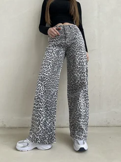 Джинсы трубы широкие леопардовые