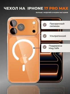 Чехол на iPhone 17 Pro MAX MagSafe прозрачный с магнитом