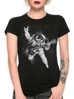 Футболка с принтом Рок-космонавт с гитарой Женская