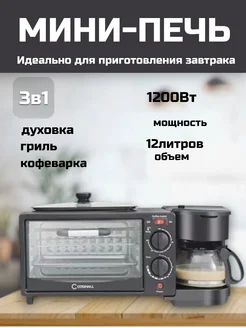 Мини печь электрическая 3в1 с грилем духовкой и кофеваркой