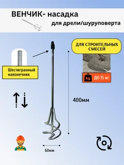 Венчик дрель шуруповерт для смесей 60х400 мм