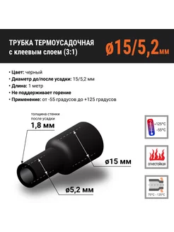Термоусадка клеевая для проводов, черная, 15 5.2 мм