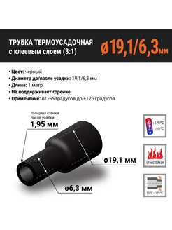 Термоусадка клеевая для проводов, черная, 19.1 6.3 мм