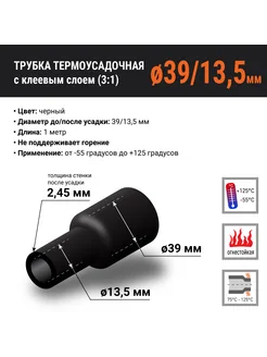 Термоусадка клеевая для проводов, черная, 39 13.5 мм