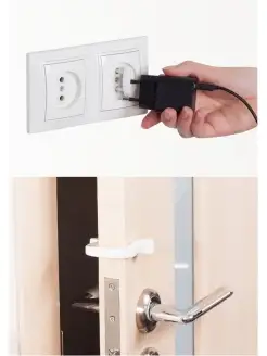 Блокиратор дверей -2шт. белый, Заглушки для розеток -6шт