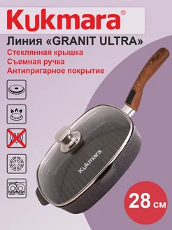 Сковорода гриль 28см антипригарное покрытие, съёмная ручка