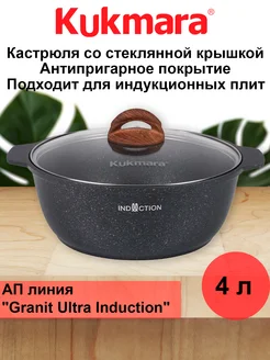 Кастрюля - жаровня 4л для индукционной плиты с крышкой