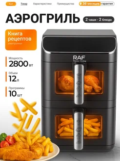 Аэрогриль электрический для дома с двумя чашами решеткой 8 л