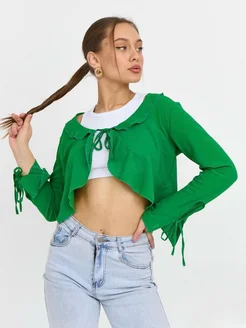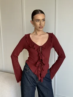Топ с воланами и шнуровкой на завязках спереди с рукавами