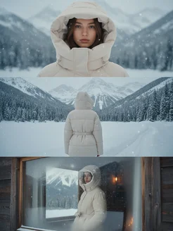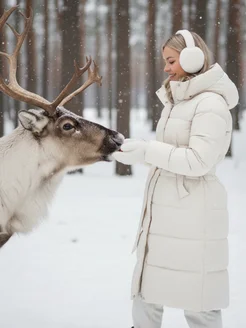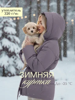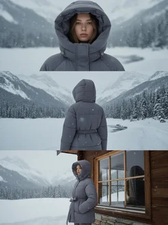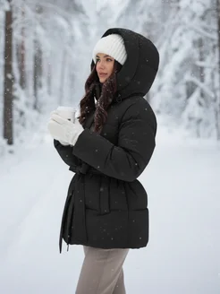 Куртка зимняя удлиненная с капюшоном и поясом