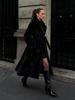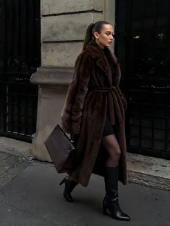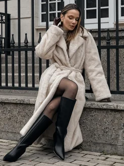 Шуба искусственная длинная с поясом под норку