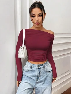 Кроп-топ с длинными рукавами трикотажный тонкий