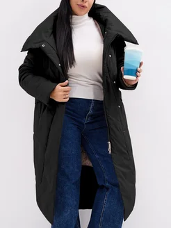 Куртка-пуховик длинная теплая зимняя с капюшоном стильная