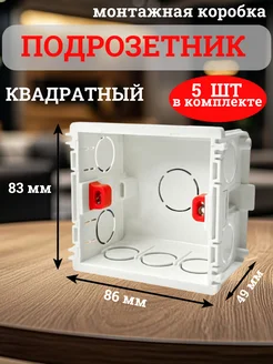 Подрозетник квадратный для выключателя и розетки 5 шт