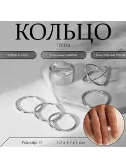 Набор колец 6 штук «Тренд» линия, цвет серебро, размер 17