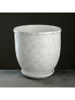 Горшок цветочный с поддоном 5л белый керамика "Белое сереб